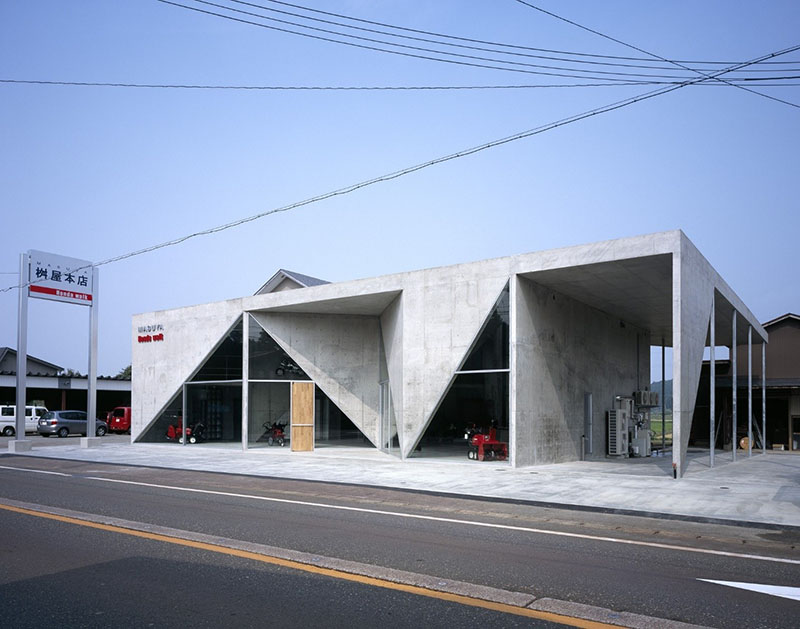 7.Masuya—a โชว์รูมคอนกรีตอันโดดเด่นของบริษัทขายรถแทรกเตอร์และรถกวาดหิมะ