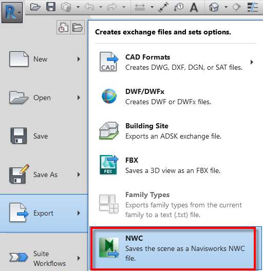 ขั้นตอนที่ต้องส่งข้อมูลจาก Revit ไปตรวจสอบยัง Navisworks ต้องอาศัย Navisworks exporters เป็นตัวส่งข้อมูล มีขั้นตอนดังต่อไปนี้