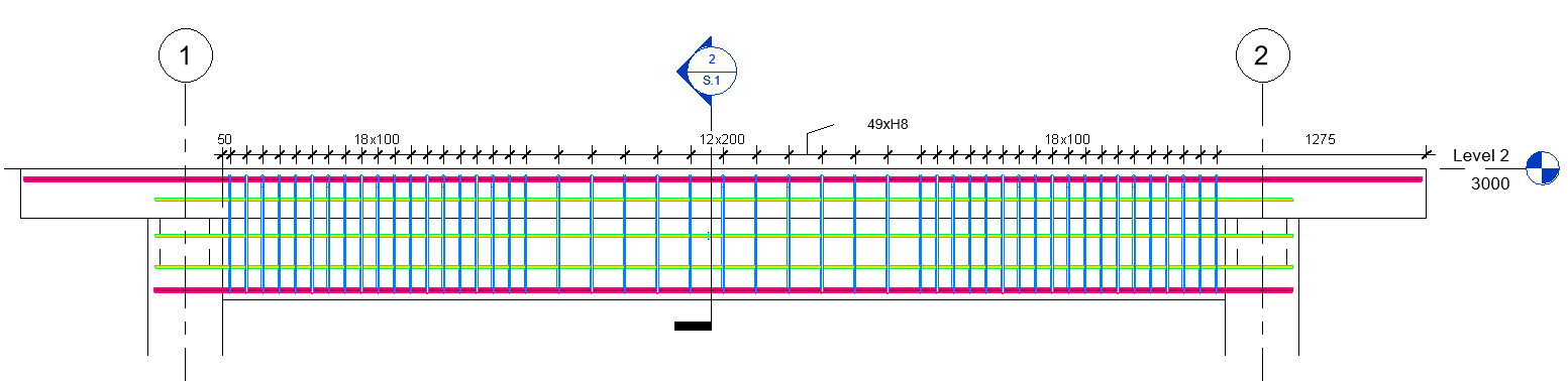 หากผู้ใช้งานต้องการใช้คำสั่ง Multi-Rebar Annotation เพื่อทำการชี้บอกรายละเอียดของเหล็กเสริมนั้น Revit ในเวอร์ชั่นก่อนหน้านี้ จะไม่สามารถใช้คำสั่งนี้เพื่อทำการชี้บอกรายละเอียดของเหล็กเสริมที่ถูกสร้างจากชุดคำสั่ง Freeform ได้ ดังรูป