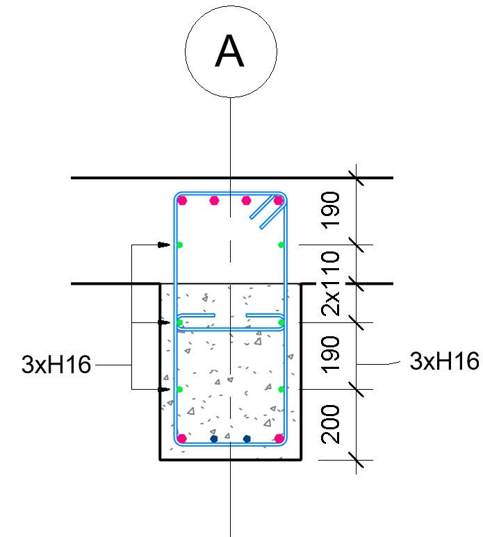 หากใช้คำสั่ง Multi-Rebar Annotation จะสามารถปรับให้บอกระยะอ้างอิงจากผิวคอนกรีตได้ ทำให้การบอกรายละเอียดเหล็กเสริมใน Drawing สะดวกมากขึ้น ดังรูป