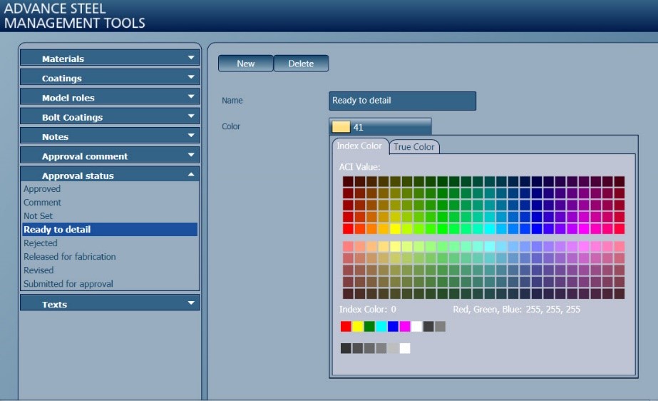 การปรับปรุงอีกส่วนหนึ่งคือ สามารถสร้างสถานะของชิ้นส่วนโครงสร้างเหล็ก ว่าชิ้นส่วนไหนอยู่ในสถานะอย่างไร เช่น อนุมัติให้เตรียมชิ้นส่วนได้ หรือ รอการแก้ไขแบบ เป็นต้น โดยอาศัยการแบ่งสี เพื่อให้สามารถมองเห็นและจำแนกประเภทได้อย่างง่ายดาย อีกทั้งยังสามารถนำไปถอดปริมาณจัดทำรายงานสถานะของแต่ละชิ้นส่วนได้อีกด้วย