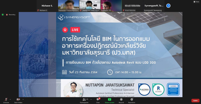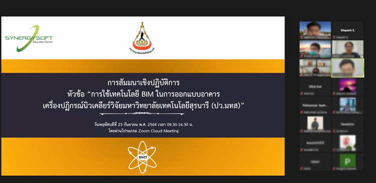 เมื่อวันพฤหัสบดีที่ 23 กันยายน 2564 เวลา 9.30 - 16.30 น. ที่ผ่านมา ทางบริษัท ซินเนอร์จี้ซอฟต์ โซลูชั่น จำกัด ได้รับเกียรติจากทางมหาวิทยาลัยเทคโนโลยีสุรนารี ร่วมเป็นวิทยากรให้ความรู้เรื่องการใช้งาน BIM ในงานสัมมนาเชิงปฏิบัติการ หัวข้อ “การใช้เทคโนโลยี BIM ในการออกแบบอาคารเครื่องปฏิกรณ์นิวเคลียร์วิจัย ของมหาวิทยาลัยเทคโนโลยีสุรนารี (ปว.มทส)” ผ่านโปรแกรม Zoom Cloud Meeting วัตถุประสงค์เพื่อสร้างอาคารสำหรับการรักษามะเร็งด้วยเทคนิคโบรอนจับยึดนิวตรอน Boron Neutron Capture Therapy: BNCT