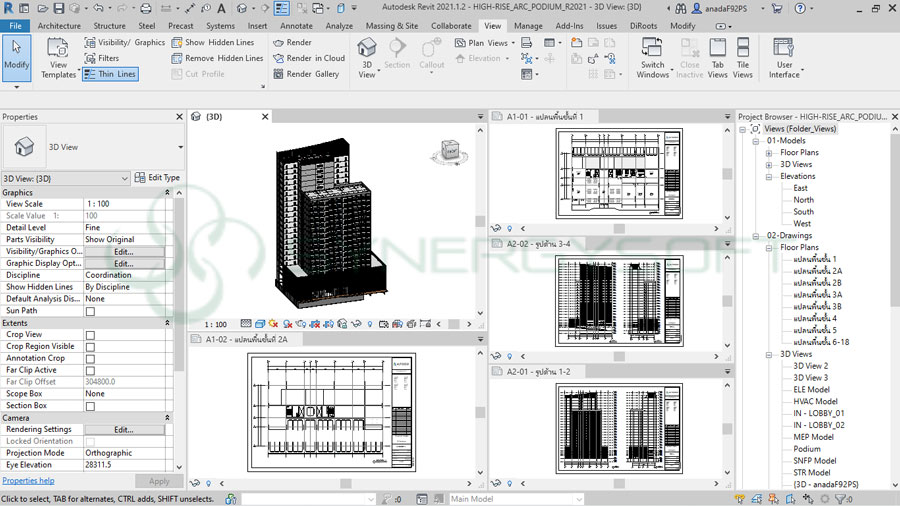 การสร้างรายละเอียดใน View Properties เช่น การปรับเปลี่ยน View Scale หรือการเปิดปิด Model ตาม Categories