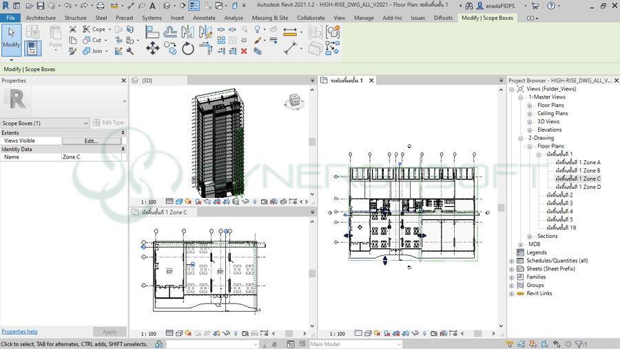 การสร้าง Scope Box และการใช้ Match Line เพื่อแบ่งพื้นที่โมเดลสำหรับทำแบบอาคารขนาดใหญ่