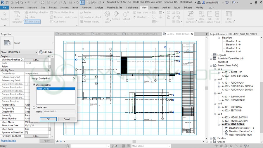- การกำหนดตำแหน่งเพื่อการจัดเรียง View ด้วยคำสั่งการตารางในชีท (Guide Grid)