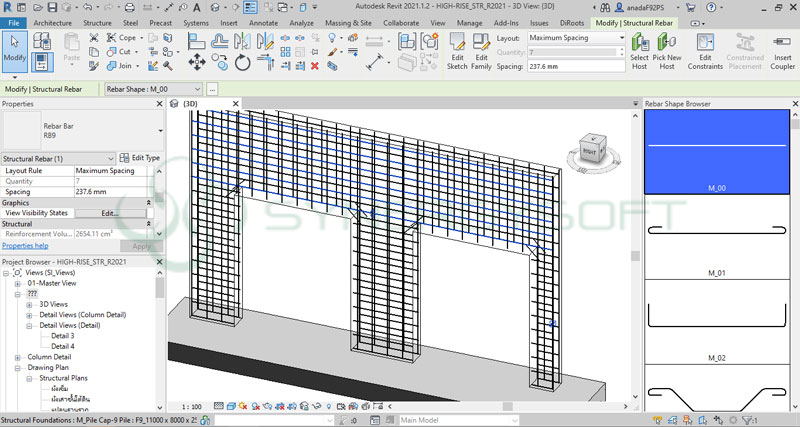 - การเขียนงานเหล็กเสริมใน 2D และ 3D และการตั้งค่า Detail Level และ Rebar Stage เพือจัดการแสดงผล